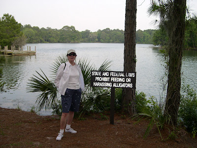 This was a very interesting place. It's a rookery and there are all sorts of birds flying and swooping around, catching fish. We saw egrets and herons. Beautiful. I love this sign, apparently there are alligators around here, but who in the world would harass them, much less try to feed them. Good grief!